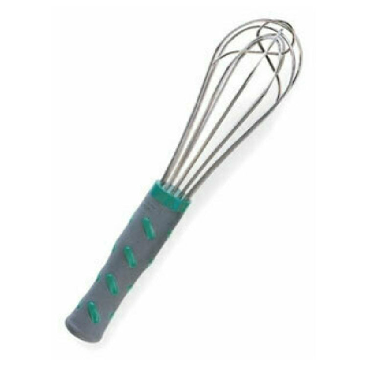 The Vollrath 47090 French Whip 10" Long One-piece is an expertly crafted kitchen tool designed for both professional chefs and culinary enthusiasts. Featuring a 10-inch length, this whip is constructed as a single piece to ensure durability and strength during rigorous use. Its aqua nylon handle is not only visually appealing but also offers heat resistance up to 475°F (246°C), making it suitable for various cooking tasks. The handle is textured and includes an end knob for a secure grip, enhancing user comfort and control. Crafted with 18-8 type 304 stainless steel wires, the whip also includes a center reinforcement wire, providing exceptional sturdiness and flexibility for efficient mixing and whipping. As part of the Jacob's Pride® Collection, this product is backed by a Limited Lifetime Warranty, reflecting its high quality and reliability. This French whip is imported and NSF certified, ensuring it meets industry standards for public health protection. The Vollrath 47090 French Whip is a versatile tool that can cater to the demands of different segment markets within the culinary industry, from high-end restaurants to home kitchens, where performance and durability are essential.