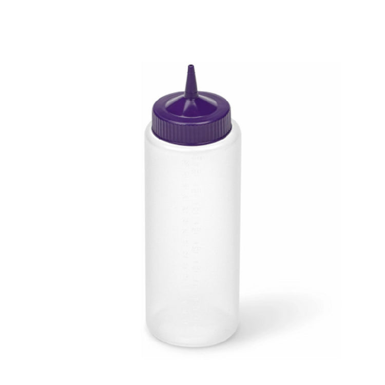 The Vollrath 4932-1354 Traex® Color-Mate™ Squeeze Bottle Dispenser 32 Oz. Wide Mouth is a versatile and essential tool for any commercial kitchen or food service operation. This 32-ounce squeeze bottle is designed with a wide mouth, making it easy to fill and clean, enhancing operational efficiency. Crafted from durable polyethylene, the clear bottle ensures contents are visible, facilitating quick identification and reducing the risk of cross-contamination. The inclusion of a standard cap, which in this model is purple, allows for easy differentiation of contents when multiple sauces or condiments are being used. Packed per 12 each per case, this product is ideal for large-scale operations requiring bulk quantities. The thoughtful design of the Traex® Color-Mate™ series ensures that this squeeze bottle is not only functional but also compliant with food safety standards. Suitable for various industries, including food service and hospitality, this product's reliable construction and practical design make it a valuable tool for efficiently managing condiments and sauces. Whether utilized in a fast-paced restaurant kitchen or a bustling catering event, the Vollrath 4932-1354 offers a practical solution for streamlined operations and effective condiment management.