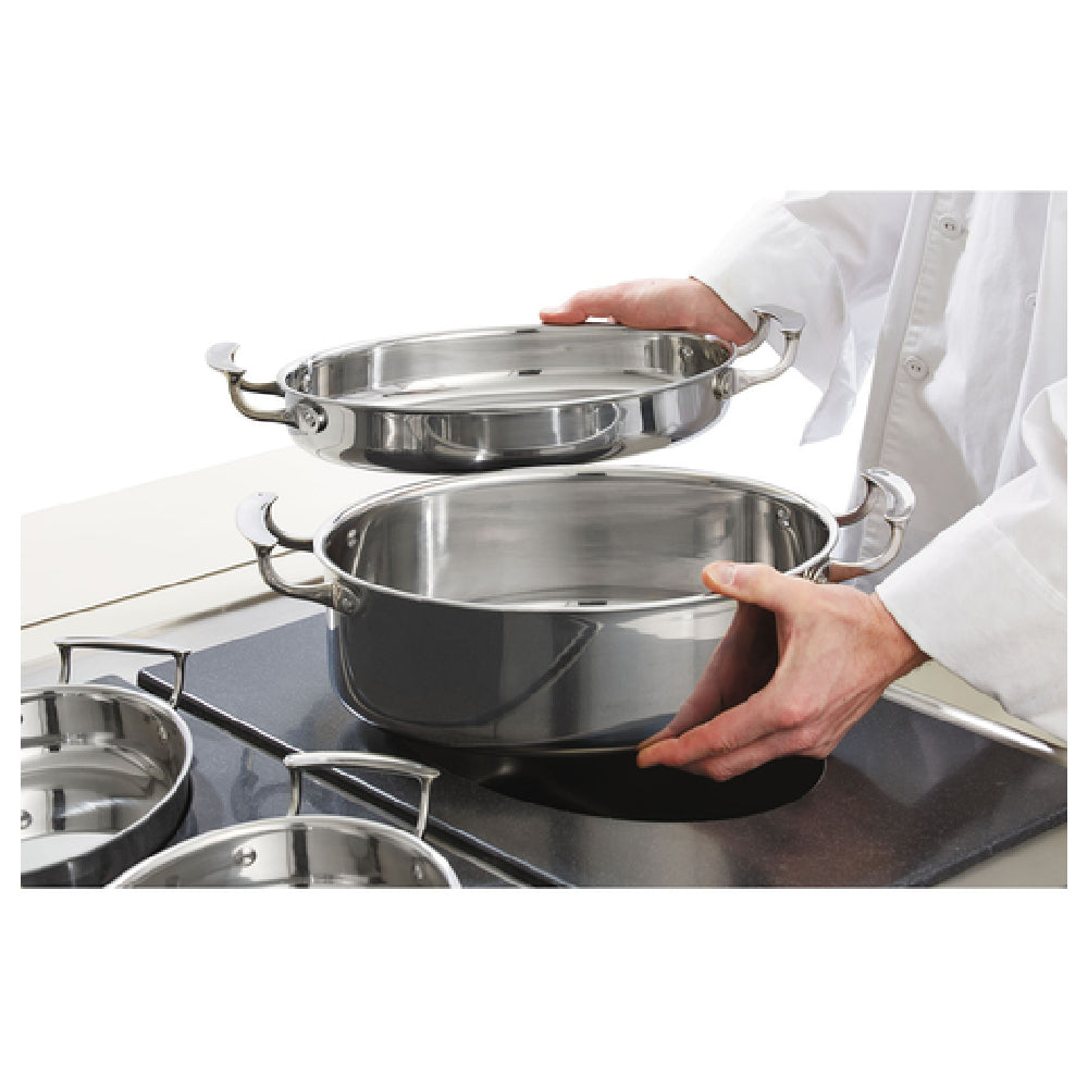 The Vollrath 49412 Miramar™ Display Cookware Oval Au Gratin is a versatile kitchen essential, boasting a 2-5/8 quart capacity and precise dimensions of 12"W x 8-1/2"D x 2"H. This cookware is engineered with a 3-ply construction, featuring an 18-8 stainless steel interior and a 3004 aluminum core bottom and side walls, ensuring superior heat distribution and durability. Designed for professional kitchens, this piece is compatible with gas, electric, and induction ranges, making it a flexible choice for various cooking environments. The satin finish interior and exterior, complemented by mirror finish welded handles, provide both functional and aesthetic benefits, enhancing its appeal in open kitchens or display settings. Part of the esteemed Jacob's Pride® Collection, this product comes with a limited lifetime warranty, reflecting its quality and reliability. Certified by NSF, it meets rigorous public health and safety standards, making it a trusted choice for chefs and culinary professionals. Imported with precision craftsmanship, the Vollrath 49412 Miramar™ Oval Au Gratin dish is an excellent addition for those seeking a blend of performance, style, and functionality in their cookware collection.