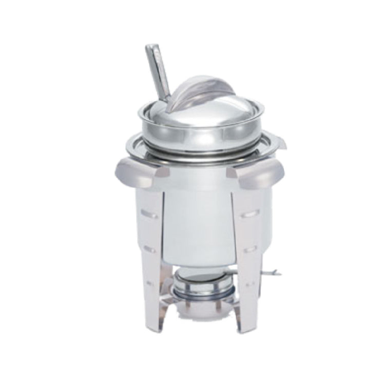 The Vollrath 49523 Maximillian Steel™ Marmite is a versatile, high-quality piece of cookware, ideal for both commercial and residential use within the culinary industry. With a capacity of 4.2 quarts (4 liters), it is crafted from durable 18-8 stainless steel, ensuring longevity and resistance to corrosion. The marmite features a mirror finish, adding a touch of elegance to any kitchen or dining setting. Its comprehensive design includes a rack, inset, water pan, and cover with holder, all enhancing its functionality. Additionally, it comes equipped with a single fuel holder, providing efficient heating capabilities for various culinary applications. Measuring 18 inches in diameter and 13 inches in height (45.7 cm x 33.0 cm), the marmite is compact yet spacious enough to accommodate a range of dishes. This imported product is suitable for restaurants, catering services, and hospitality sectors seeking reliable and aesthetic serving solutions. The Vollrath 49523 Maximillian Steel™ Marmite stands out for its premium construction and practical design, making it a valued asset in any professional kitchen.