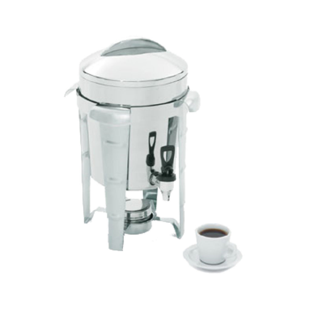 The Vollrath 49525 Maximillian Steel™ Coffee Urn is an 11.6-quart (11 L) appliance crafted from 18-8 stainless steel, making it a durable and reliable choice for catering services, hotels, and event planners. Its mirror finish adds a touch of elegance and professionalism to any setup, enhancing the ambiance of service environments. This unit includes a rack, a spigot for easy dispensing, and a cover to maintain optimal temperature and flavor of the coffee. Measuring 13 inches by 13-1/2 inches by 19 inches (33.02 x 34.29 x 48.26 cm), it is compact enough to fit in various service settings while providing ample capacity for high-volume needs. Each unit comes equipped with one fuel holder, ensuring that coffee stays hot for extended periods, which is particularly useful for outdoor events or locations without direct power supply. It is important to note that a universal electric heater does not fit this unit, emphasizing its design specific for fuel-based heating. This imported coffee urn is ideal for those who value a blend of style, functionality, and capacity, delivering a significant advantage for businesses looking to efficiently serve large groups without compromising on quality or presentation.