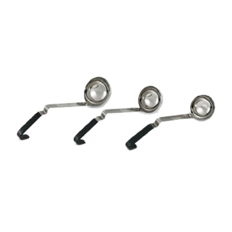 The Vollrath 4980622 Ergo Grip® Ladle is a 6 oz. capacity tool renowned for its practical design and durability, tailored for various culinary environments. Featuring a bowl diameter of 3-3/8", this ladle is crafted from high-quality stainless steel, ensuring longevity and resistance to corrosion. Its overall length is 13-1/4", making it a comfortable and efficient choice for serving. The handle is constructed with Kool-Touch™ technology, offering a one-piece black offset design that is safe to handle up to 225°F (107.2°C) and fully functional up to 350°F (176.6°C). An integrated handle stopper enhances control and prevents slippage during use. Part of the Jacob's Pride® Collection, this ladle promises exceptional quality and is backed by a Limited Lifetime Warranty for peace of mind. The Vollrath 4980622 is NSF certified, attesting to its adherence to public health and safety standards. Its all-natural antimicrobial grip is particularly beneficial in busy kitchens where hygiene is paramount. This ladle is an excellent addition to foodservice operations seeking reliable and hygienic serving tools that meet rigorous industry standards.