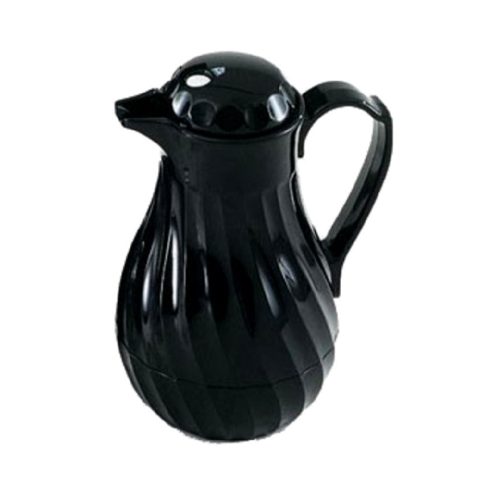 The Vollrath 52142 Tilt & Pour® SwirlServe® Beverage Server - 20 oz. is a uniquely designed beverage server that caters to diverse needs within the hospitality and food service industry. Featuring an ABS plastic exterior, this server presents a robust and durable solution for effective beverage service. The interior is lined with polypropylene, ensuring the contents are well preserved, while the insulation with polyurethane keeps beverages at their optimal temperature for extended periods. With a sleek black finish, it adds a touch of elegance to any setting. Exclusively hand wash only, this imported server emphasizes quality maintenance. Its 20 oz. capacity makes it suitable for both individual and small group servings, ideal for cafes, restaurants, and catered events. The carefully engineered Tilt & Pour® technology allows for easy, spill-free pouring, enhancing the user experience. The SwirlServe® design not only provides a visually appealing aesthetic but also adds to the ergonomic efficiency of the server. By focusing on these technical attributes, the Vollrath 52142 offers industry professionals a reliable and stylish option for beverage presentation and storage, meeting the demands of both high-paced environments and intimate settings alike.