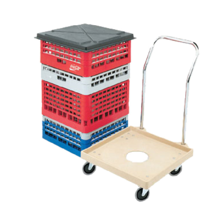The Vollrath 52292 Dolly Dish Rack Plastic with Center Drain Hole is a highly functional equipment piece tailored for commercial kitchens and food service establishments. This dolly dish rack, crafted from durable plastic, comes equipped with a center drain hole, facilitating efficient water drainage and ensuring cleanliness in bustling kitchen environments. Measuring 20 inches by 20 inches, it offers ample space for accommodating dish racks, contributing to streamlined operations and organization. The dolly features a platform supported by two swivel and two fixed casters, enabling agile maneuverability and stability during transport, even in compact or crowded spaces. With a sturdy 200 lb weight capacity, this product is designed to handle substantial loads, optimizing efficiency in handling and transporting dishes and utensils. Notably, this model is produced without a handle, enhancing its versatility and allowing it to fit seamlessly into various operational setups. Furthermore, its beige color and American-made construction emphasize both aesthetics and quality assurance, aligning with industry standards. The Vollrath 52292 Dolly Dish Rack is an essential tool for establishments seeking reliable, high-capacity dish handling solutions, combining robust design with practical features to meet the dynamic demands of the food service industry.