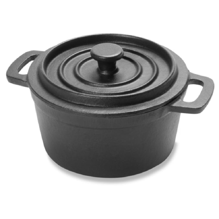 The Vollrath 59742 Mini High Round Casserole Dish is an expertly crafted kitchen essential, offering a distinct blend of functionality and style. With a capacity of 26.4 oz., this mini casserole dish is perfect for individual servings and small dish presentations, making it a valuable addition to both professional and home kitchens. It measures 5 inches in diameter and 2-3/4 inches in height, which provides a compact yet spacious cooking vessel for a variety of recipes. Constructed from durable cast iron, this dish ensures even heat distribution and retention, which is essential for achieving perfectly cooked meals. The inclusion of a lid adds to its utility, helping to maintain moisture and enhance flavors during cooking. This dish is particularly suited for restaurants or catering services that focus on upscale presentations, as its sleek design complements any table setting. Its robust construction ensures longevity, making it a reliable choice for chefs and culinary enthusiasts who prioritize quality and efficiency in their kitchen tools. The Vollrath 59742 Mini High Round Casserole Dish, with its precise dimensions and high-quality materials, is designed to meet the diverse needs of the food service industry, delivering both performance and aesthetic appeal.