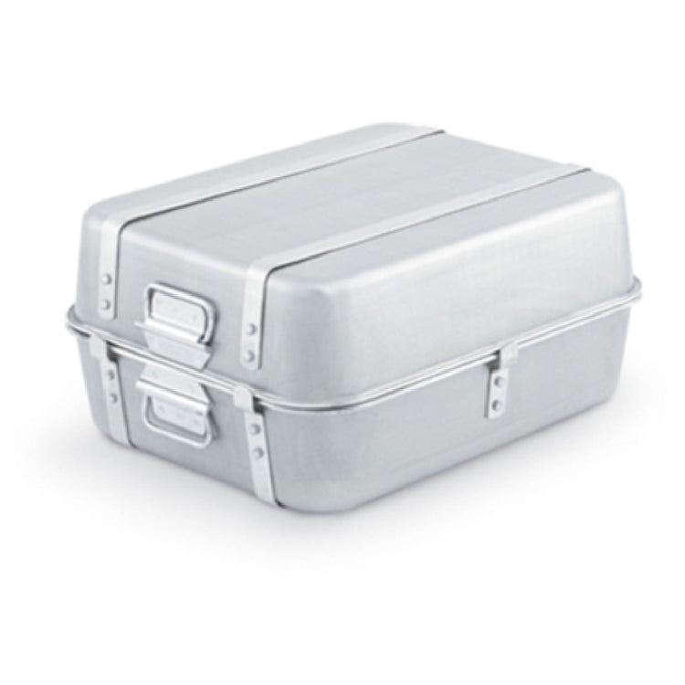 The Vollrath 68360 Double Roaster Set - 23-1/4 quart - Aluminum is an exceptional kitchen tool, engineered for superior culinary performance. This double roaster set includes both a top and bottom component, connected securely with straps to enhance cooking stability. Featuring loop riveted handles, it ensures ease of handling and maximum durability, making it an asset for both commercial and home kitchens. The roaster's dimensions - 20-1/8" x 16-1/8" x 9-3/4" - provide ample cooking space, facilitating the preparation of large meals with efficiency. Constructed from 12-gauge aluminum, this set offers excellent heat distribution and retention, which is essential for achieving perfectly roasted dishes. Its NSF certification guarantees that the product meets stringent health and safety standards, a crucial factor for food service operations. Proudly made in the USA, the Vollrath 68360 exemplifies quality manufacturing and reliability. This double roaster set serves diverse market segments within the culinary industry, appealing to professional chefs and cooking enthusiasts who demand high-performance cookware. Its robust construction and practical design make it a versatile and indispensable tool for roasting, baking, and beyond.