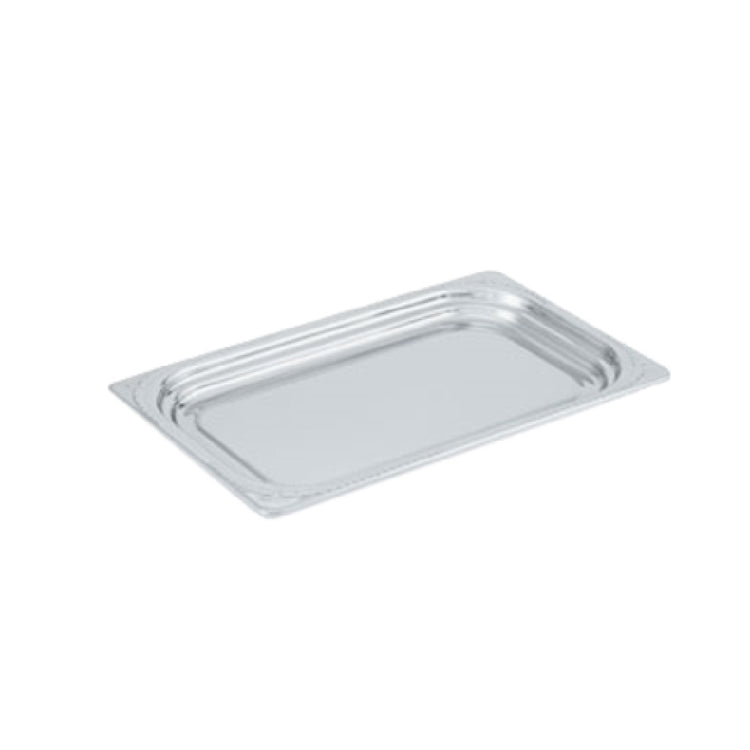 The Vollrath 8230310 Miramar Decorative Food Pan is a full-size, versatile solution designed to meet the diverse needs of the foodservice industry. With dimensions of 21-1/2 inches in width, 13-5/16 inches in depth, and 1-1/4 inches in height, this pan offers a substantial 2.9-quart capacity, making it suitable for a range of culinary applications. The pan's distinctive embossed pattern on the rim adds an elegant touch, enhancing its aesthetic appeal for buffet presentations or upscale dining settings. Constructed from 18/8 high-polished stainless steel, the pan ensures durability and a professional appearance, while its NSF certification underscores its compliance with stringent public health and safety standards. As an imported piece, it reflects global standards of quality and reliability. This decorative food pan is an ideal choice for catering businesses, hotels, and restaurants seeking a blend of functionality and style, enabling chefs and food service professionals to present their dishes with sophistication and confidence.