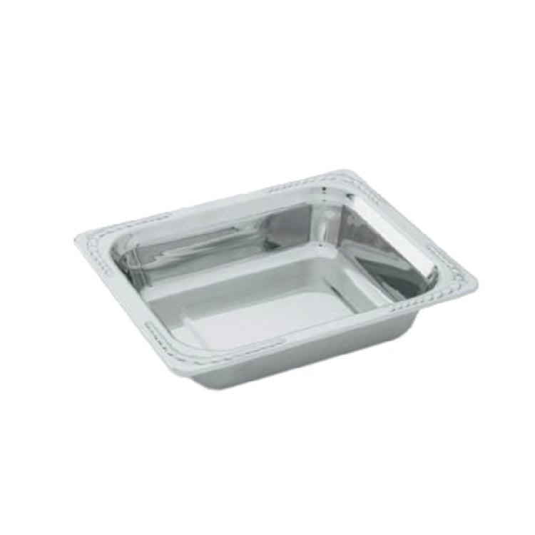The Vollrath 8230720 Miramar™ Decorative Food Pan is a premium 1/2 size culinary vessel, measuring 13-1/16 inches in width, 10-5/8 inches in depth, and 2-3/4 inches in height, designed to meet the diverse needs of food service professionals. This food pan boasts a 3.4-quart capacity, making it an ideal choice for a variety of serving situations, from buffet lines to catered events. Its distinctive embossed pattern on the rim adds a touch of elegance and sophistication, enhancing the visual appeal of any presentation. Crafted from high-polished 18/8 stainless steel, this pan combines durability with a sleek, modern aesthetic. The NSF certification ensures it meets stringent public health standards, providing peace of mind for chefs and restaurateurs focused on maintaining quality and safety in their kitchens. Imported for superior craftsmanship, the Vollrath 8230720 is a versatile addition to any food service setting, offering a unique blend of functionality and style. Its robust construction is designed to withstand the demands of professional use, making it an indispensable tool for those who prioritize excellence and reliability in their culinary operations.