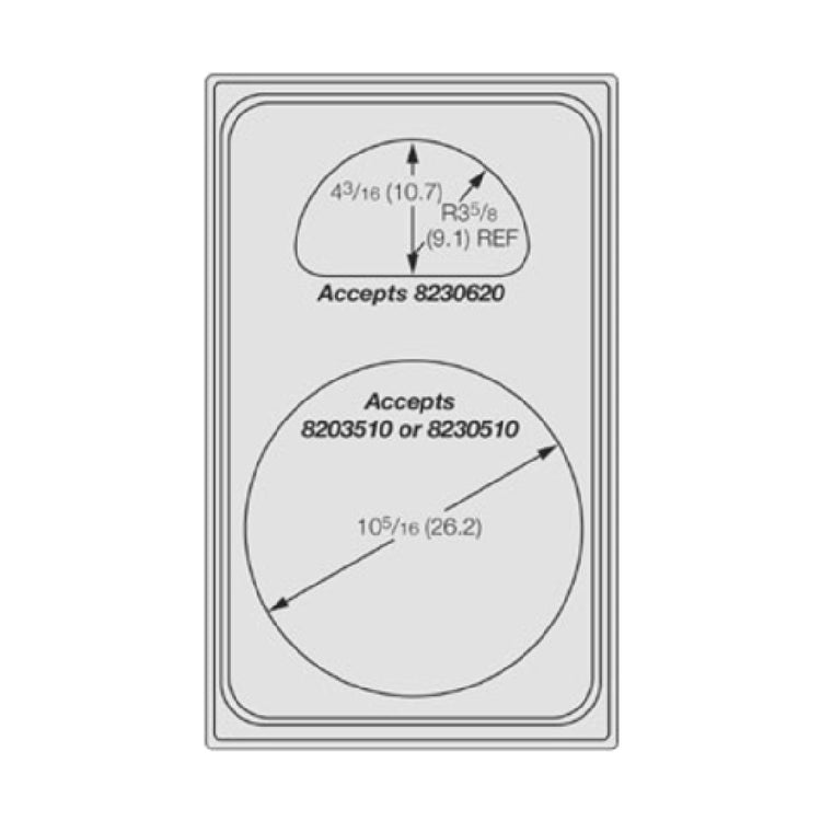 - Accommodates (1) 8203510 or (1) 8230510 & (1) 8230620 pans