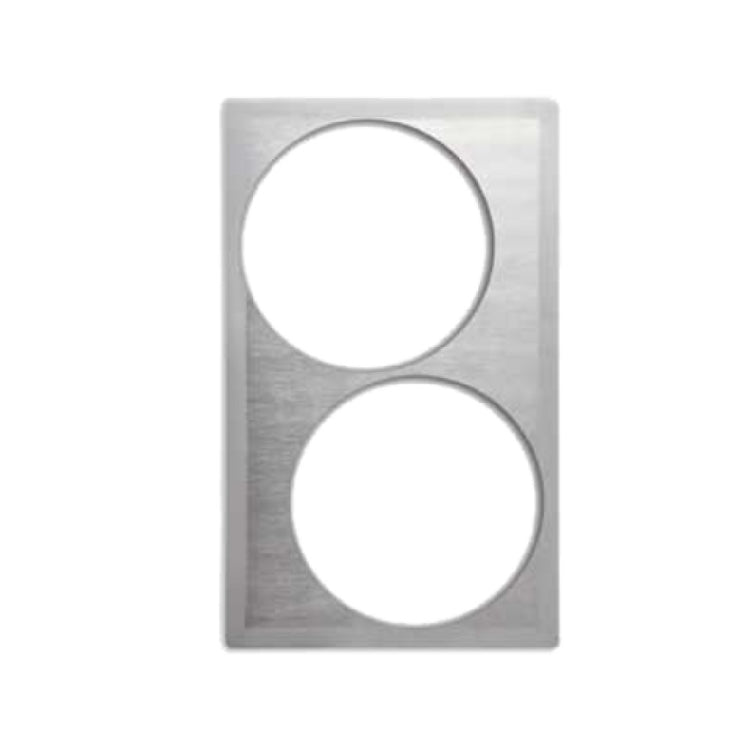 The Vollrath 8242516 Miramar™ Single Size Template For Miramar™ Cookware Stainless Steel Satin Edge is an expertly engineered kitchen accessory designed to enhance professional food service operations. Crafted with high-quality stainless steel satin edge, this template features two large round cutouts, specifically accommodating two 49411 5-quart casseroles. Its precise dimensions of 21-1/8" x 12-3/4" ensure a snug fit and optimal positioning within various kitchen setups. The product is NSF certified, highlighting its compliance with health and safety standards, and it proudly carries the mark of quality with its "Made in USA" label. This template is an ideal solution for culinary professionals seeking to streamline their kitchen workflows, offering a durable and efficient way to organize cookware. With its robust construction and practical design, the Vollrath 8242516 is suitable for diverse market segments within the food service industry, from bustling restaurant kitchens to high-capacity catering services. This template not only supports the high-volume demands of professional environments but also reflects the meticulous craftsmanship synonymous with the Vollrath brand, ensuring reliability and functionality in every use.