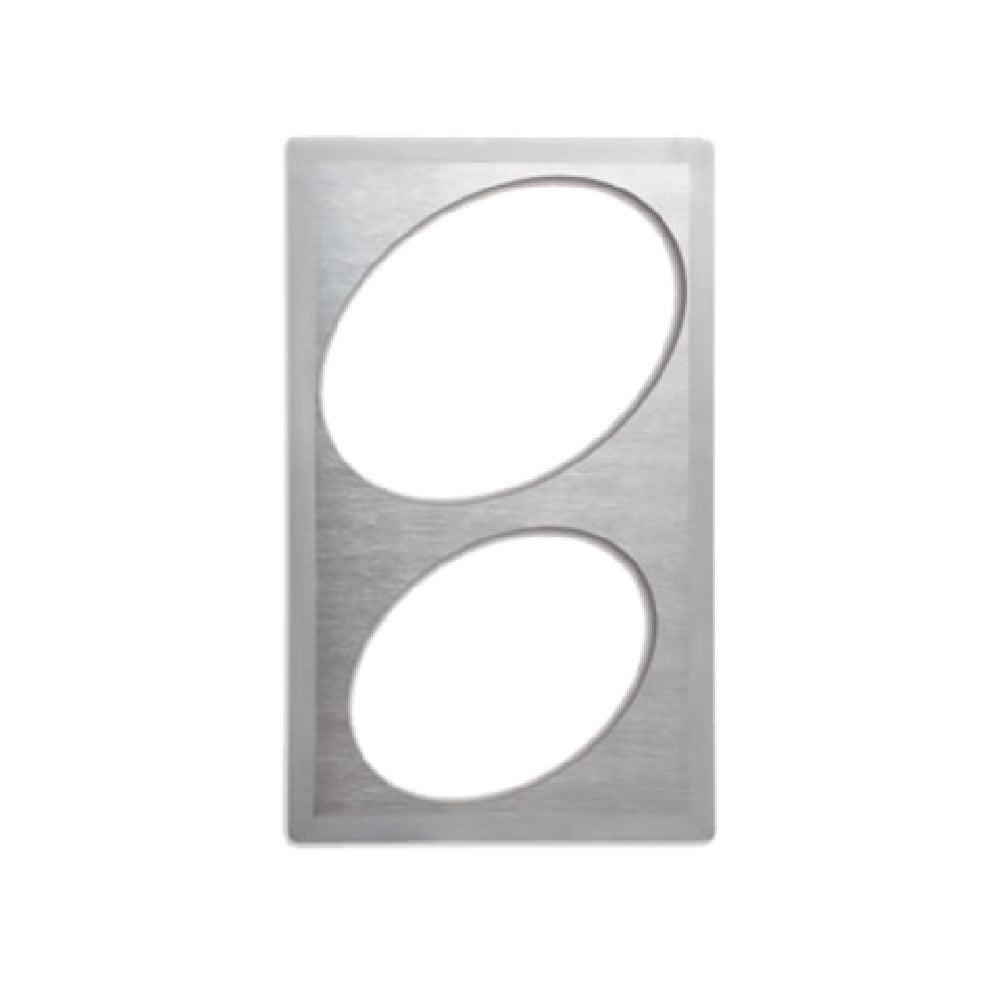 The Vollrath 8243116 Miramar™ Single Size Template for Miramar™ Cookware is a highly specialized culinary tool designed to enhance kitchen efficiency and presentation. Crafted from durable stainless steel with a sleek satin edge, this template is engineered to accommodate specific cookware configurations. It features one medium oval and one large oval cutout, precisely designed to fit the 49420 10-inch oval au gratin dish and the 49412 12-inch oval au gratin dish. With overall dimensions of 21-1/8 inches by 12-3/4 inches, this template is ideal for chefs and caterers who require precision and style in their food presentation. Made in the USA, this product exemplifies quality and craftsmanship, catering to the needs of professional kitchens and upscale culinary establishments. Its design not only ensures a secure fit for the specified dishes but also elevates the visual appeal of buffet lines and serving stations. By using the Vollrath 8243116 Miramar™ Single Size Template, culinary professionals can achieve a seamless and sophisticated setup, enhancing both functionality and aesthetics in their service environments.