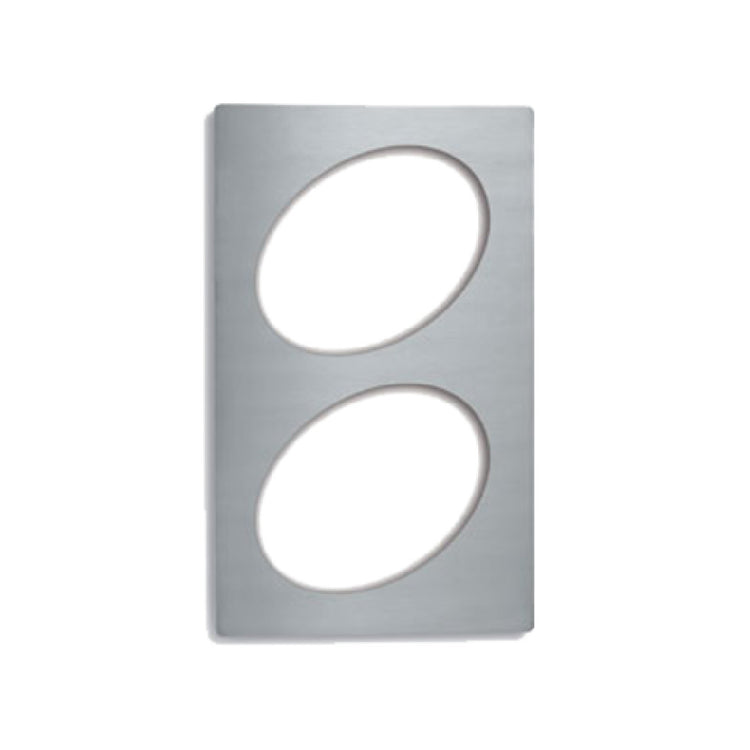 The Vollrath 8243214 Miramar™ Single Size Template for Miramar™ Cookware is expertly crafted to enhance efficiency in professional culinary environments. This stainless steel accessory features a plain edge design, providing a sleek and durable framework. The template is ingeniously designed with two medium oval cutouts, perfectly accommodating two 49420 10-inch oval au gratins. The overall dimension of this template is 21-1/8 inches by 12-3/4 inches, ensuring a precise fit for standardized service setups. Certified by NSF, this product adheres to stringent public health and safety standards, making it a reliable choice for the foodservice industry. Proudly made in the USA, the Vollrath 8243214 template is an ideal solution for chefs and caterers seeking to maintain uniformity and organization in their presentation. Tailored for use with Miramar™ cookware, this template seamlessly integrates into diverse culinary operations, from hotel buffets to upscale catering services, offering a distinctive blend of functionality and style.