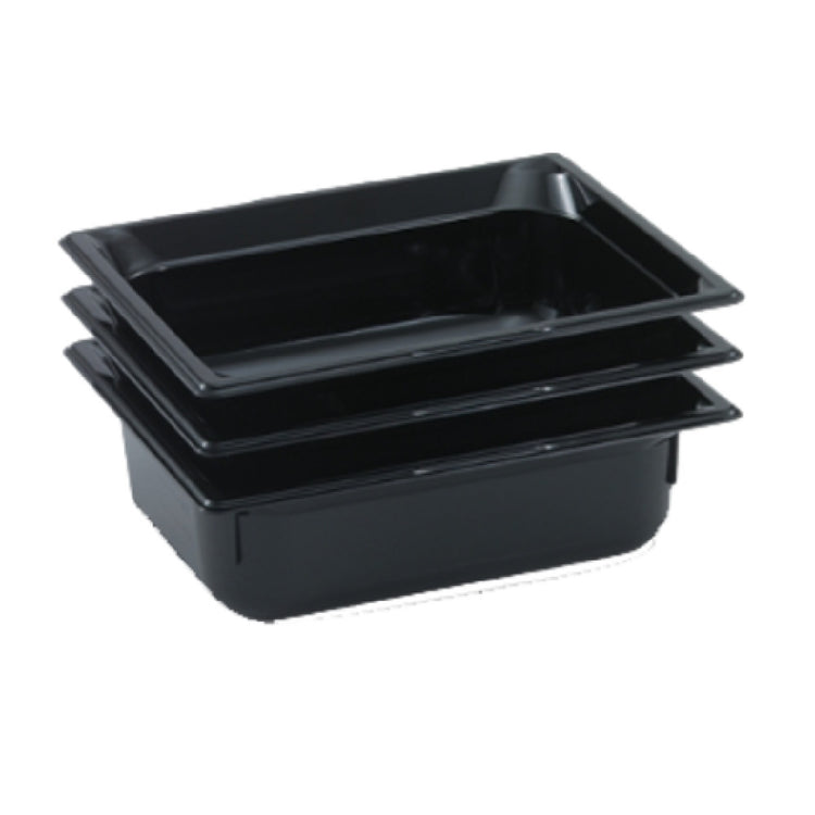 The Vollrath 9002420 Super Pan® 1/1 GN Food Pan 2-1/2" Deep High-temp Black Resin is a versatile and durable solution for food storage and presentation in professional kitchens. Engineered from high-temp black resin, this pan is designed to withstand rigorous kitchen environments. Its 2-1/2" depth provides ample space for various culinary applications, while the top flange corners with concave indentation promote easy handling and stacking. The anti-jamming feature ensures seamless stacking without sticking, reducing wear and tear. This pan's ramped sides and reverse form flattened edge facilitate smooth content transfer, enhancing operational efficiency. The framing shoulder offers a solid grip for secure handling. Compatible with the SPV stainless steel pan line for interchangeable use, it meets the stringent gastronorm (EN 631-1) standard, ensuring its suitability for international kitchen operations. NSF certification underscores its compliance with public health and safety standards. Proudly made in the USA, the Vollrath 9002420 Super Pan® is a reliable choice for chefs seeking a high-quality, dependable food storage solution that integrates seamlessly with existing kitchen equipment while delivering robust performance across diverse food service environments.