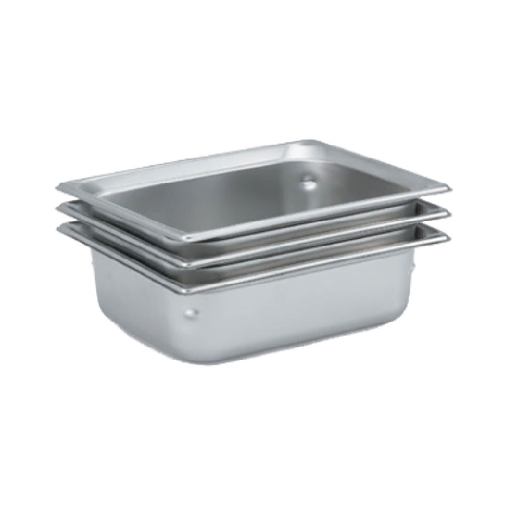 The Vollrath 90242 Super Pan 3® 1/2 GN Food Pan 4" Deep (100mm) is engineered for maximum efficiency and durability in professional culinary environments. Featuring a 6.6-quart capacity and crafted from 22-gauge, 300 series stainless steel, this food pan ensures remarkable longevity and resistance to corrosion. Its design includes top flange corners with a concave indentation, which, paired with anti-jamming technology, facilitates easy stacking and storage, significantly reducing space requirements and streamlining kitchen operations. The pan's ramped sides and reverse form flattened edge contribute to its sleek design and functional ease. Additionally, it boasts a framing shoulder and is interchangeable with the SPV plastic pan line, offering versatility in use and compatibility with existing equipment. Conforming to the gastronorm (EN 631-1) standard and NSF certified, this pan meets stringent international and health safety standards, making it a reliable choice for catering services, commercial kitchens, and food storage solutions. Proudly made in the USA, the Vollrath 90242 represents a commitment to quality and innovation in food service equipment.