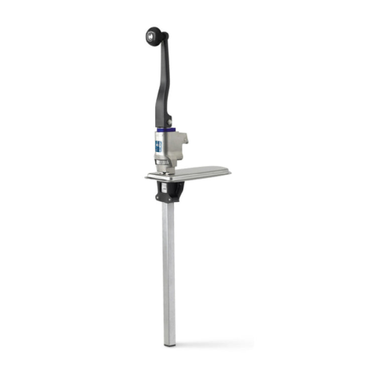 The Vollrath BCO-6000 EaziClean® Can Opener is a heavy-duty kitchen tool designed for efficiency and durability, featuring a distinctive blue color-coded collar for easy identification. Constructed with high-quality stainless steel, this can opener boasts a 25-inch bar length and shaft, offering robust support for opening cans. Its ergonomic design prioritizes user comfort during operation. The patented quick-release blade ensures swift and seamless blade changes, while the case-hardened blade is enhanced with an antibacterial coating, promoting hygiene. The cutting mechanism, crafted from high-grade steel, guarantees a clean cut and is dishwasher safe for easy maintenance. Designed to accommodate cans up to 22 inches in height, it can efficiently process up to 60 #10 cans per day, making it ideal for high-volume food service environments. With a 1-1/2 inch gear, this can opener is engineered for reliability and performance. It is supported by a 2-year warranty, underscoring its long-term value. Compatible replacement parts include Blade item BCO-11, Gear item BCO-10, and Cartridge item BCO-14. This NSF-certified product is imported, ensuring it meets rigorous industry standards for safety and quality. The Vollrath BCO-6000 is a versatile and essential tool for any professional kitchen.