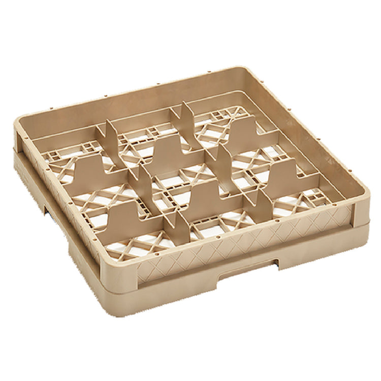 The Vollrath CR10 Traex-Compartment Rack Full Size (9) Compartment is a meticulously designed solution for effective dishwashing and storage needs in commercial kitchens. This full-size rack features nine compartments, each measuring 5-7/8 inches square, with an inside height of 3-1/4 inches, catering specifically to the secure placement and separation of dishware during cleaning cycles. Its closed wall base enhances stability and protection, ensuring that items remain secure during transport and handling. Crafted from durable co-polymer plastic, this compartment rack promises longevity and resilience in demanding environments. The beige color adds a neutral, professional touch suitable for any kitchen aesthetic. As an NSF-certified product, it meets rigorous public health standards, aligning with best practices for safety and sanitation. Manufactured in the USA and made to order, this rack supports local industry while offering customizable solutions for specific operational requirements. The Vollrath CR10 Traex-Compartment Rack is an ideal choice for a variety of segments within the food service industry, including restaurants and catering services, delivering reliable performance and practical design tailored to optimize dishwashing efficiency and organization.