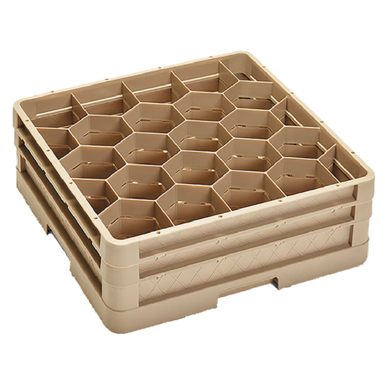 The Vollrath CR11GG Traex® Rack Max® is a full-size rack designed specifically for maximizing your cup and glass storage needs with its 20-compartment configuration. Each compartment boasts a sizeable 3-15/16-inch diameter hexagon shape, ensuring ample space for a variety of cup or glass sizes, and a 6-3/8-inch inside height to accommodate taller items. Constructed from durable co-polymer plastic, the rack is both lightweight and sturdy, providing longevity and ease of use in any commercial kitchen setting. The closed wall base, complemented by two extenders, allows for enhanced stability and security, ensuring your items remain securely in place during transport or storage. Available in a sleek beige finish, this rack not only serves a practical purpose but also adds a touch of elegance to your kitchen storage solutions. Certified by NSF, it upholds the highest standards of safety and hygiene, crucial for food service operations. Proudly made in the USA, this rack is tailored to meet the demands of busy food service environments, offering a reliable and efficient solution for cup and glass management. With its made-to-order feature, it provides a customized approach to your specific storage needs, optimizing space and ensuring seamless operation.