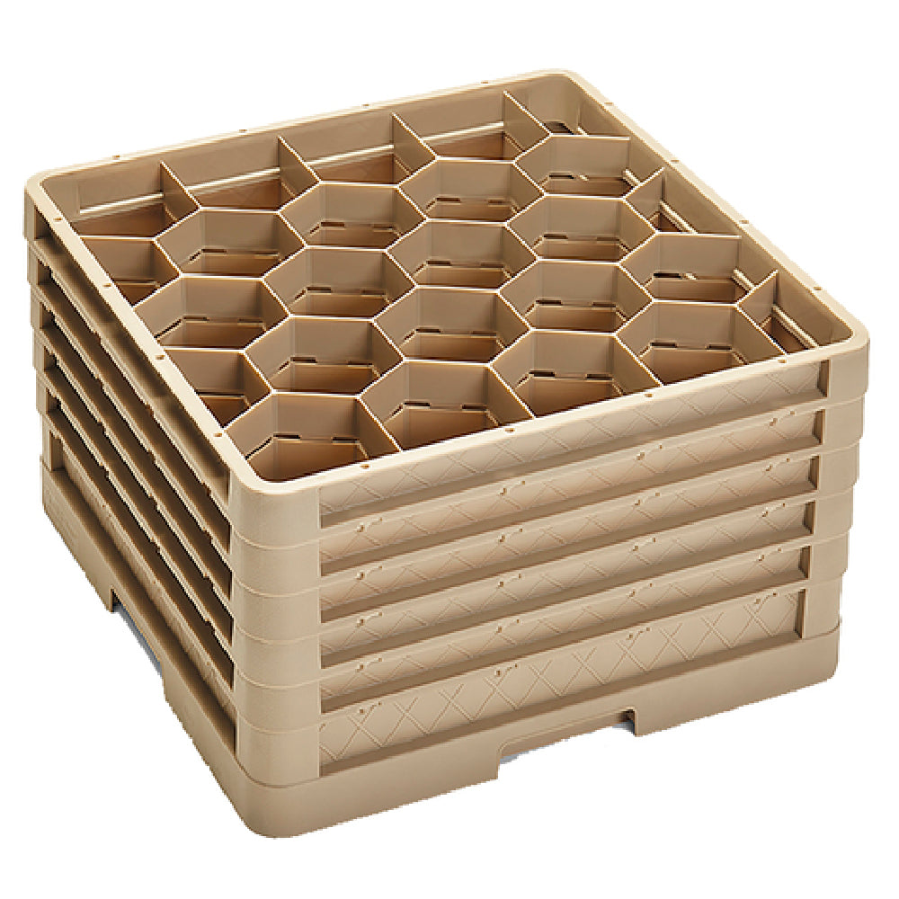 The Vollrath CR11GGGGG Traex Rack Max Full Size (20) Compartment Cup/Glass is an expertly engineered solution for efficient glassware management in hospitality settings. This full-size rack features 20 compartments, each with a compartment size of 3-15/16" diameter hexagon, perfectly designed to securely hold cups and glasses during washing, storage, and transport. The rack is built with a closed wall base and is equipped with five extenders, allowing for customizable adjustments to accommodate various glass heights up to an impressive 11" inside height. Constructed from high-quality co-polymer plastic, this rack is both durable and lightweight, ensuring long-lasting use while being easy to handle. Its beige color adds a classic touch to its robust design. Certified by NSF, it meets stringent health and safety standards, making it a reliable choice for businesses prioritizing hygiene and efficiency. Proudly made in the USA, the Vollrath CR11GGGGG is a made-to-order product, ensuring that each unit is crafted to meet specific industry needs. Whether used in bustling restaurants, bars, or catering services, this rack demonstrates Vollrath's commitment to quality and precision in kitchenware organization.