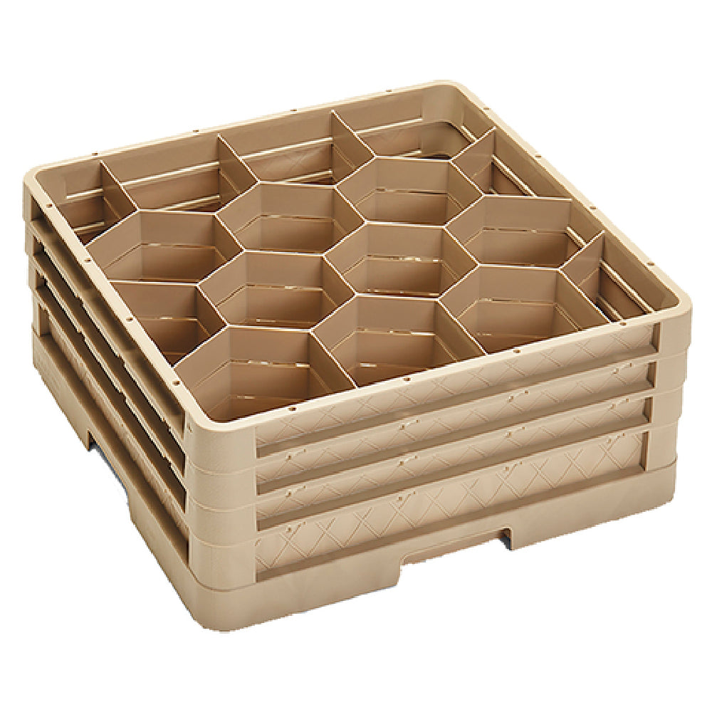 The Vollrath CR18JJJ Traex® Rack Max® is a full-size cup and glass rack featuring twelve compartments, ideal for efficient dishware organization in professional kitchens. Each compartment measures 4-3/4 inches in diameter with a hexagonal shape, offering ample space for cups and glasses while ensuring secure placement. The rack's interior height is 7-7/8 inches, accommodating a variety of cup and glass sizes. Constructed from durable co-polymer plastic, this beige-colored rack is designed to withstand the rigors of daily commercial use. The closed wall base provides added stability and protection, while three extenders enhance its capacity and flexibility. Made to order in the USA, this product reflects commitment to quality and customization. Furthermore, its NSF certification guarantees compliance with industry health and safety standards, making it a reliable choice for food service establishments. Suitable for various market segments, including restaurants, hotels, and catering services, the Vollrath CR18JJJ Traex® Rack Max® combines functionality with durability, facilitating seamless operations in environments that demand efficient and reliable dishwashing solutions.