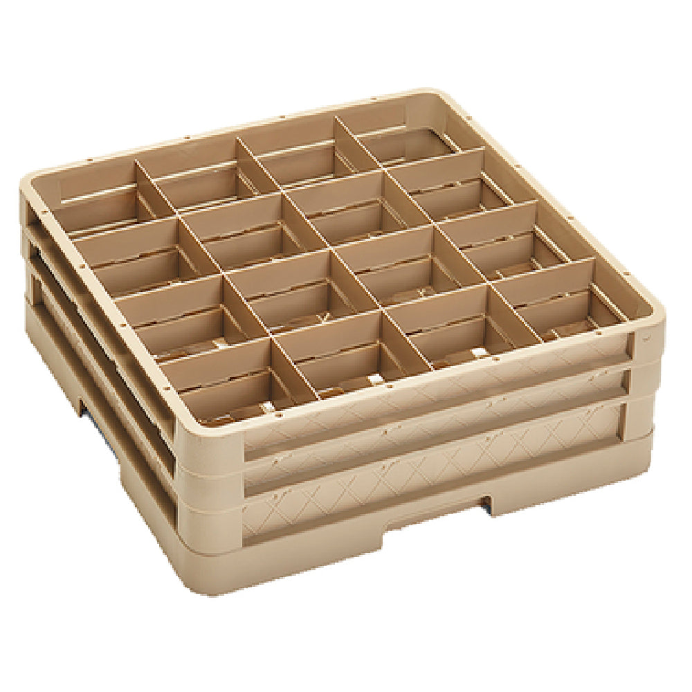 The Vollrath CR4DD Traex® Compartment Rack Full Size - 16 Compartment Cup/Glass is meticulously designed to cater to the diverse needs of the food service industry. This full-size rack features a robust configuration with 16 compartments, each measuring 4-7/16" square, providing ample space for storing and organizing cups or glasses securely. The rack boasts a closed wall base and includes two extenders, which enhance its capacity and adaptability in various settings. With an inside height of 6-3/8", it efficiently accommodates taller glassware while ensuring stability during transport and storage. Constructed from co-polymer plastic, this rack combines durability with a lightweight design, making it an excellent choice for everyday use in high-demand environments. The beige color provides a neutral aesthetic that complements a range of commercial kitchens and hospitality settings. Certified by the NSF, the Vollrath CR4DD meets stringent public health and safety standards, offering peace of mind to operators focused on hygiene and compliance. Proudly made in the USA and crafted to order, this compartment rack reflects a commitment to quality and innovation, making it a versatile solution for restaurants, hotels, and catering services that require reliable and efficient storage solutions for their glassware.