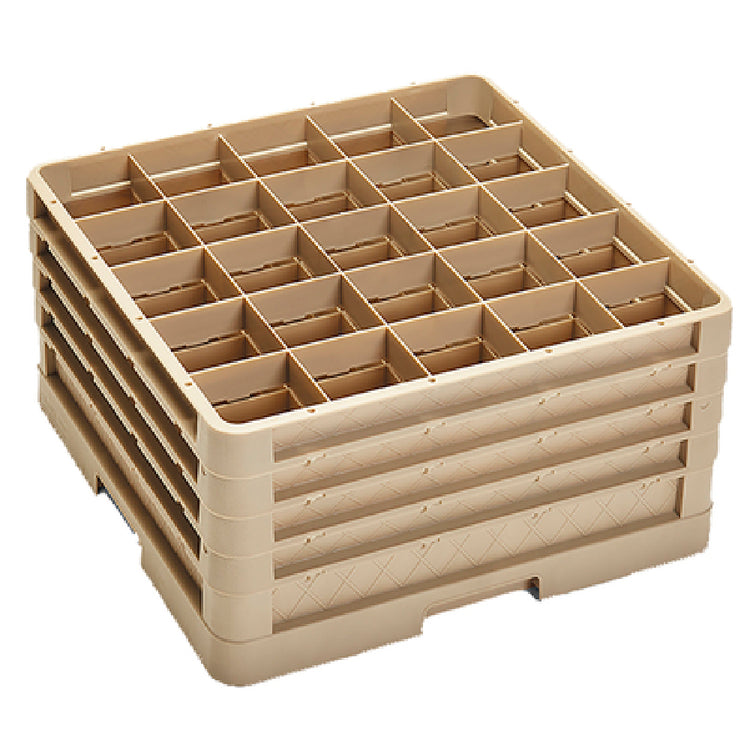 The Vollrath CR6BBBB Traex® Compartment Rack Full Size - 25 Compartment is an expertly designed utility for the commercial kitchen, providing an effective solution for organized and efficient dishware management. This full-size rack boasts 25 individual compartments, each measuring 3-1/2 inches square, ensuring optimal accommodation for a variety of glassware and dishware. With a closed wall base, it maintains stability and prevents slipping, complemented by four extenders that offer additional height and flexibility, resulting in an overall inside height of 9-7/16 inches. Crafted from durable co-polymer plastic, this rack is both lightweight and strong, facilitating ease of handling and robust longevity. The beige color adds a neutral, professional aesthetic that blends seamlessly with most kitchen environments. Proudly made in the USA, this rack is also NSF certified, ensuring it meets strict public health and safety standards. Custom-made to order, the Vollrath CR6BBBB Traex® Compartment Rack is a practical investment for various segments within the food service industry, such as restaurants, hotels, and catering services, where streamlined operations and equipment reliability are paramount. Its design emphasizes practicality and durability, making it an indispensable tool for effective kitchen organization.