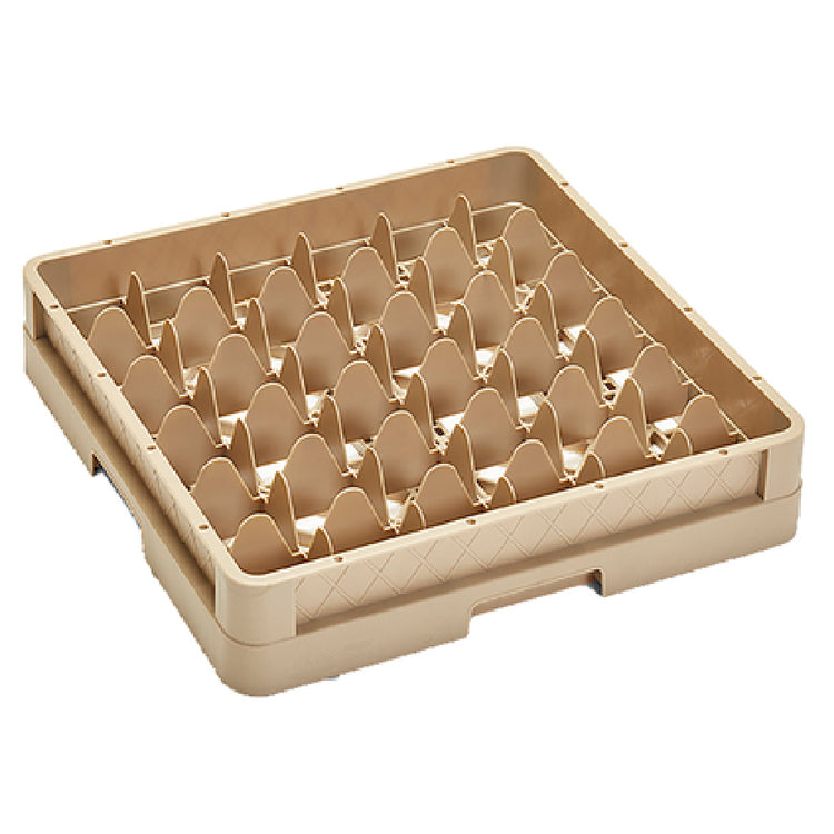 The Vollrath CR7 Traex®Compartment Rack Full Size (36) Compartment is an expertly crafted storage solution designed to meet the demands of various industries requiring efficient dishwashing and storage systems. Each of the 36 compartments measures 2-7/8 inches square with an inside height of 3-1/4 inches, providing ample space for securely holding glasses and other small kitchenware. The rack is constructed with a closed wall base that enhances stability, and its durable co-polymer plastic material ensures long-lasting use while maintaining a lightweight structure for easy handling. This product comes in a sleek beige finish, making it an aesthetically pleasing addition to any kitchen environment. As a product made in the USA, it meets stringent NSF certification standards, highlighting its commitment to quality and safety in food service environments. This rack is ideal for commercial kitchens, catering businesses, and event venues where organized and efficient storage solutions are crucial. Its made-to-order design allows for customization to meet specific operational needs, making it a versatile choice for professionals seeking reliability and functionality in their dishwashing processes.