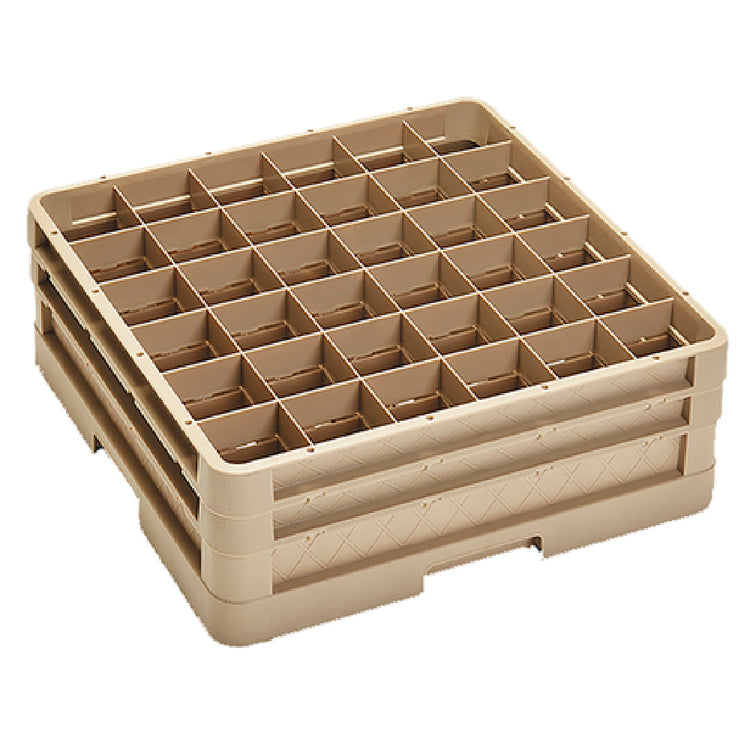 The Vollrath CR7CC Traex® Compartment Rack Full Size (36) Compartment is a meticulously engineered solution designed to meet the diverse needs of the food service industry. This full-size rack features a total of thirty-six compartments, each with a dimension of 2-7/8 inches square and an inside height of 6-3/8 inches, making it ideal for efficiently organizing and storing a variety of dining ware. Constructed with co-polymer plastic, the rack ensures durability while being lightweight for ease of handling. Its closed wall base, complemented by two extenders, enhances the protection and stability of the contents, thereby making it suitable for high-volume operations. The beige color adds a neutral and professional look, easily integrating into any kitchen environment. Certified by the NSF, this product meets stringent health and safety standards, providing peace of mind to operators in environments ranging from restaurants and hotels to catering services. Proudly made in the USA, each rack is made to order, ensuring careful manufacturing standards tailored to specific needs. This compartment rack stands out as a practical choice for establishments seeking reliability and efficiency in their operational workflow.