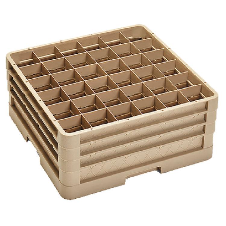 The Vollrath CR7CCC Traex-Compartment Rack Full Size (36) Compartment is a meticulously designed solution for efficient warewashing and storage needs, catering to diverse market segments within the foodservice industry. This rack features 36 individual compartments, each measuring 2-7/8 inches square, accommodating a variety of glassware sizes and shapes, making it particularly suitable for restaurants, hotels, and catering services that require organized and secure storage options. With a closed wall base complemented by three extenders, this rack offers enhanced protection and stability, ensuring that glassware remains safe during washing and transportation. The 7-7/8 inch inside height provides ample space for taller glassware, accommodating a wide range of items. Constructed from durable co-polymer plastic in an appealing beige color, the Vollrath CR7CCC is built to withstand the rigors of daily use while maintaining its structural integrity. NSF certification underscores its adherence to stringent public health and safety standards, making it an ideal choice for establishments prioritizing hygiene and cleanliness. Proudly made in the USA and available as a made-to-order product, this compartment rack delivers exceptional quality and reliability, meeting the demanding needs of the modern foodservice industry.