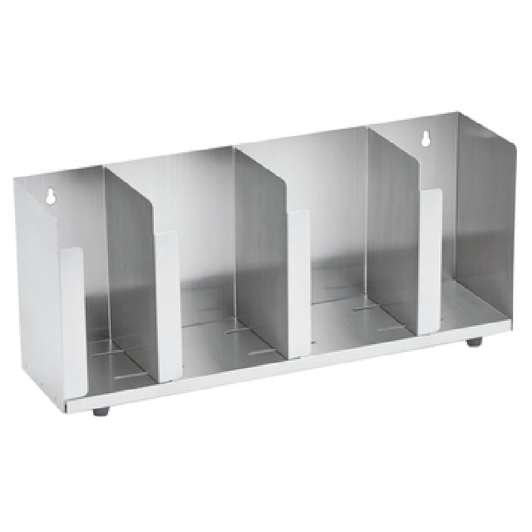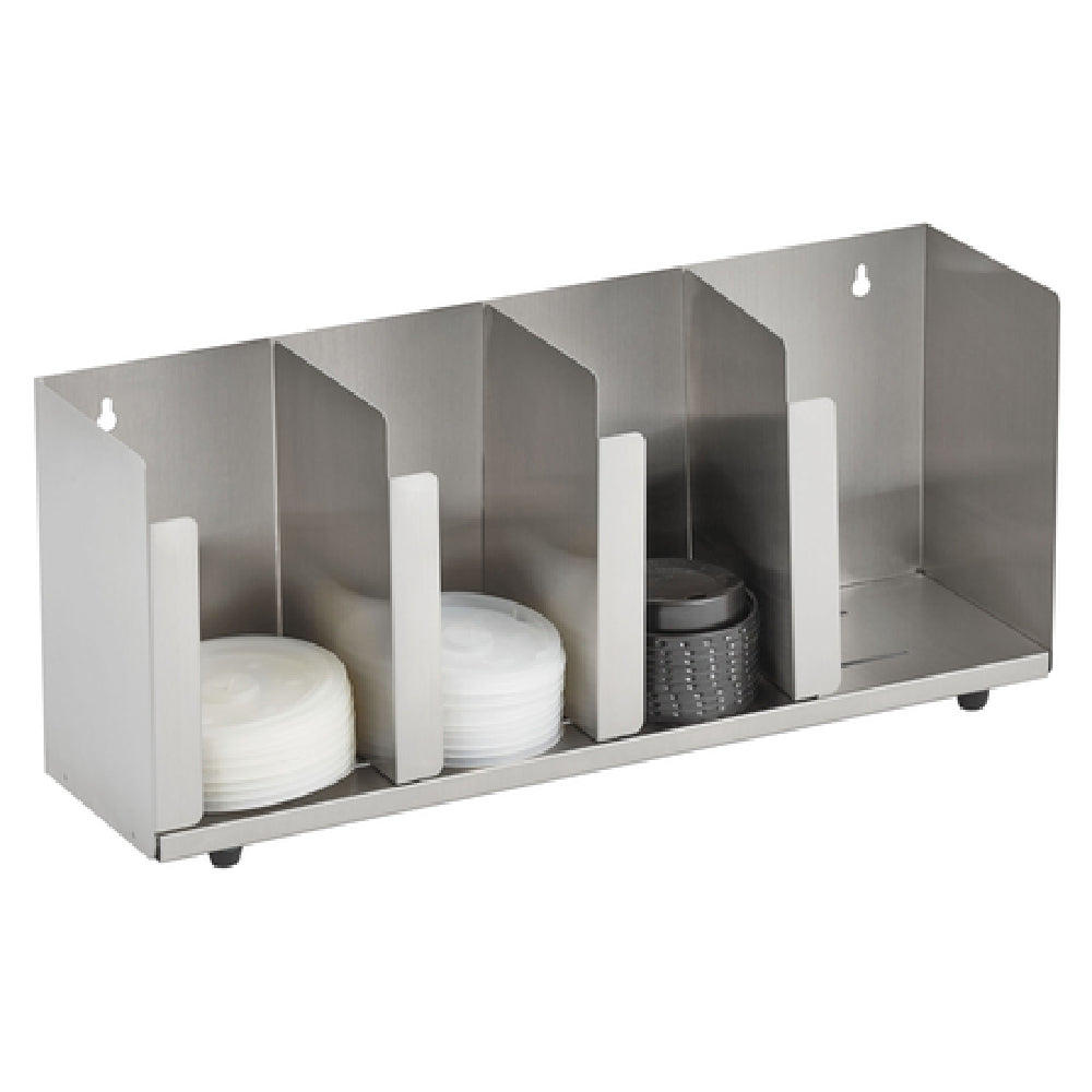 The Vollrath CTL4 Horizontal 4-Section Adjustable Lid Organizer with Straw Holder is a versatile and essential addition to any food service operation. Featuring a compact design measuring 8 inches in height, 16-1/2 inches in width, and 5 inches in depth, this organizer efficiently maximizes counter space while maintaining an organized station. Its stainless steel construction ensures durability and long-lasting use, suitable for the high demands of the restaurant and catering industries. The keyhole mounting feature provides ease of installation and flexibility in positioning, making it adaptable to various work environments. Designed to accommodate different lid sizes with its adjustable compartments, it enhances the speed and efficiency of service. Additionally, the integrated straw holder offers a convenient solution for quick access, further streamlining operations. The Vollrath CTL4 stands as a testament to quality and practicality, catering to diverse market segments, including cafes, fast-food outlets, and self-service dining facilities, where organization and accessibility are paramount. Its robust design and functionality make it an invaluable asset for maintaining an orderly and efficient workspace.