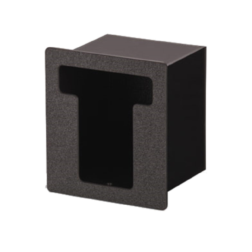 The Vollrath FML-1 Flush Mount Lid Holder is a versatile and compact solution designed for efficient storage and organization of lids in commercial kitchen environments. Featuring a single column, this lid holder can be mounted either horizontally or vertically, offering flexibility to suit varying spatial needs. The overall dimensions of the holder are 6-1/2 inches in width, 5-3/8 inches in depth, and 7-1/4 inches in height, making it an unobtrusive addition to any setup. The cutout size measures 6-5/16 inches by 5-9/16 inches, ensuring a precise fit for easy installation. Constructed from black impact-resistant molded thermoplastic, this lid holder is built to withstand the rigors of busy food service operations while maintaining a sleek appearance. The inclusion of mounting screws streamlines the installation process, providing a ready-to-use solution right out of the box. The Vollrath FML-1 is an ideal choice for restaurants, cafeterias, and catering services seeking a durable and adaptable lid management system to enhance operational efficiency and maintain an organized workspace.