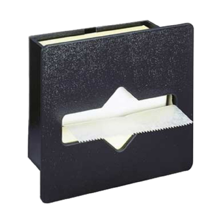 The Vollrath FMT-1 Flush Mounted Wax Tissue Dispenser is expertly crafted to accommodate most midget-sized waxed tissue cartons, making it a versatile addition to any food service environment. This unit is designed to mount flush into the face of food counters, ensuring a seamless integration that enhances the overall aesthetic and functionality of your service area. The dispenser features a 2-box system, allowing for easy loading and quick refills as it effortlessly snaps into place. Constructed from durable ABS plastic, the Vollrath FMT-1 promises longevity and reliability in high-demand settings. With a sleek black finish, this dispenser is both unobtrusive and stylish. The cut-out size for installation is 7-1/16"H x 7-5/16"W, while the overall dimensions measure 8"H x 8-1/4"W x 3-1/2"D. This makes it a compact yet efficient solution for maintaining hygiene standards. Mounting hardware is included, simplifying the installation process. The Vollrath FMT-1 is an ideal choice for restaurants, cafeterias, and other food service operations seeking a practical solution for tissue dispensing that combines quality with ease of use.