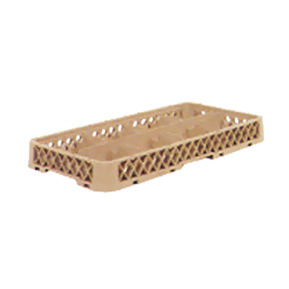 The Vollrath HRB Traex® Dishwasher Rack Extender Half-size (8) Compartments is meticulously designed for optimizing dishwashing efficiency across various industry segments. With dimensions of 10 inches wide by 19-3/4 inches deep and a height of 2 inches, it is crafted to accommodate diverse dish sizes within its eight spacious compartments, each measuring 4-1/8 inches wide by 4-7/16 inches deep and 1-3/4 inches high. Constructed from durable co-polymer plastic, this rack extender provides robust performance and longevity, ensuring reliable use in high-demand environments. The beige finish offers a classic aesthetic that fits seamlessly into any kitchen setup. As an NSF-certified product, it meets stringent public health and safety standards, making it a preferred choice for establishments prioritizing hygiene and safety. Proudly made in the USA, the Vollrath HRB Traex® Dishwasher Rack Extender is a versatile and practical solution, catering to the needs of foodservice operators, restaurants, and catering businesses looking to maximize dishwasher capacity and enhance operational efficiency. Its precise design and construction make it an invaluable asset, contributing to streamlined operations in commercial kitchen environments by facilitating organized and effective cleaning processes.
