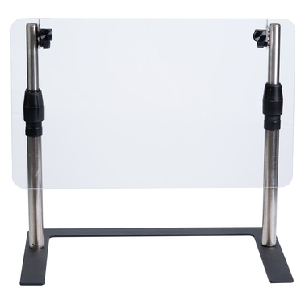 The Vollrath MB48FLAT 48" Mobile Countertop Breathguard is a versatile and essential addition for catering services and banquet facilities. Specifically sized for standard banquet tables, this breathguard is compatible with most warmers, chafers, and buffet service pieces, enhancing the aesthetic and functional appeal of any food service setup. Its user-friendly design is marked by an easy assembly process and an adjustable flat acrylic panel, allowing for customization of height between 14-1/4" to 25-1/4" via stainless steel poles equipped with a molded adjustment knob. The breathguard features an Iron Powder Coated base, ensuring stability and durability during use. Conveniently shipped knocked down for efficient transport and storage, it also offers the advantage of readily available replacement parts, contributing to its longevity and utility. Proudly made in the USA, the Vollrath MB48FLAT is tailored for industry professionals seeking reliable, quality equipment that seamlessly integrates with existing service pieces, offering protection and style in one sophisticated package.