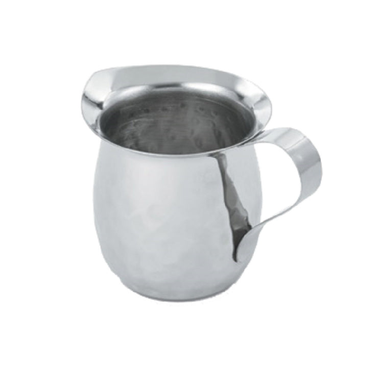 The Vollrath T4030HH Creamer 3 Oz. Bell Shaped is a meticulously designed piece of serveware, embodying both elegance and functionality. With a 3-ounce capacity, this bell-shaped creamer is perfect for precise portioning, catering to both intimate and large-scale restaurant settings. Made from high-quality stainless steel, it offers remarkable durability and resistance to corrosion, ensuring longevity in various food service environments. The creamer features a distinctive hand-hammered finish, adding a touch of artisanal craftsmanship that enhances its aesthetic appeal. Its ergonomic handle provides a comfortable grip, facilitating easy pouring and control. The Vollrath T4030HH Creamer is particularly valued in upscale dining establishments and hotels, where attention to detail and presentation is paramount. Its compact size and elegant design make it an ideal choice for serving cream, milk, or sauces alongside coffee or tea. This versatile piece not only complements a sophisticated table setting but also supports efficient and stylish service in cafes, restaurants, and catering events. By combining traditional design elements with modern manufacturing techniques, the Vollrath T4030HH Creamer stands out as a reliable and attractive serving accessory within the food service industry.