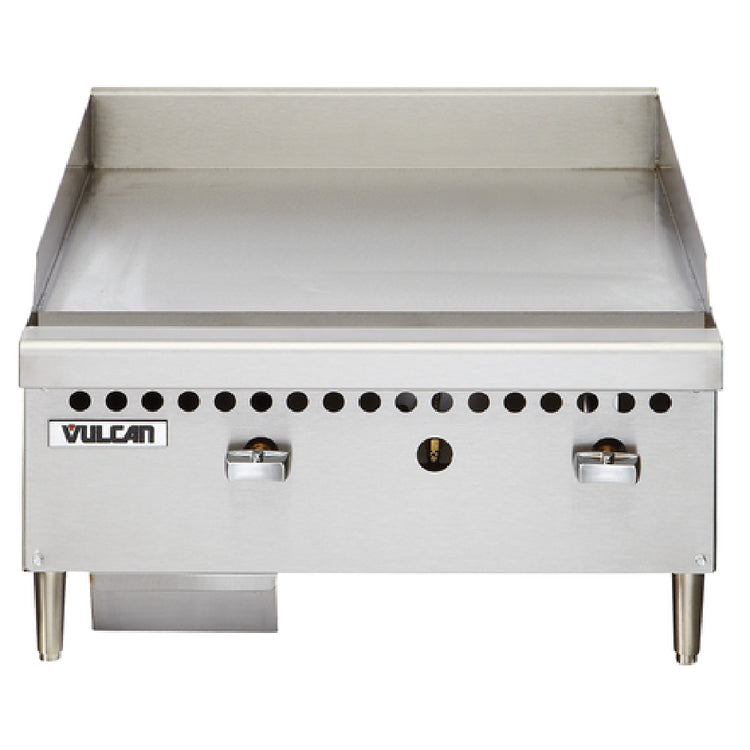 Vulcan, VCRG36-M-QS-PLATINUM_NAT, (Quick Ship) Griddle, countertop, gas, 36" W x 20-1/2" D cooking surface, 1" thick polished steel griddle plate, (3) burners, fully welded, manual control valve every 12", low profile, 4-1/2" grease can capacity, (1) drawer, stainless steel front, sides & front top ledge, 4" adjustable legs, 75,000 BTU, CSA, NSF