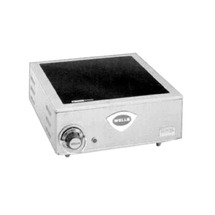 The Wells HC-100 Hotplate Countertop Electric is a compact and efficient cooking solution, featuring a sleek glass-ceramic surface and a single burner with a 7-inch element. Measuring 12-5/8 inches in width, it is designed for space-constrained environments where efficient cooking is a priority. The hotplate operates on a 120v/60/1-ph electrical system, drawing 1400 watts and 11.7 amps, and is equipped with a NEMA 5-15P plug, ensuring compatibility with standard electrical outlets. Its 1-inch legs provide stability and maintain a safe distance from the countertop surface. Certified by cUL, the Wells HC-100 is recognized for meeting rigorous safety standards. This hotplate is an ideal choice for diverse market segments, including small commercial kitchens, catering businesses, and food service operations seeking a reliable and versatile cooking appliance. The durable glass-ceramic material not only adds a modern aesthetic but also facilitates easy cleaning and maintenance, enhancing its practicality for busy food preparation environments. The Wells HC-100 stands out as a high-performance hotplate that combines technical precision with user-friendly features, making it an invaluable asset in professional culinary settings.