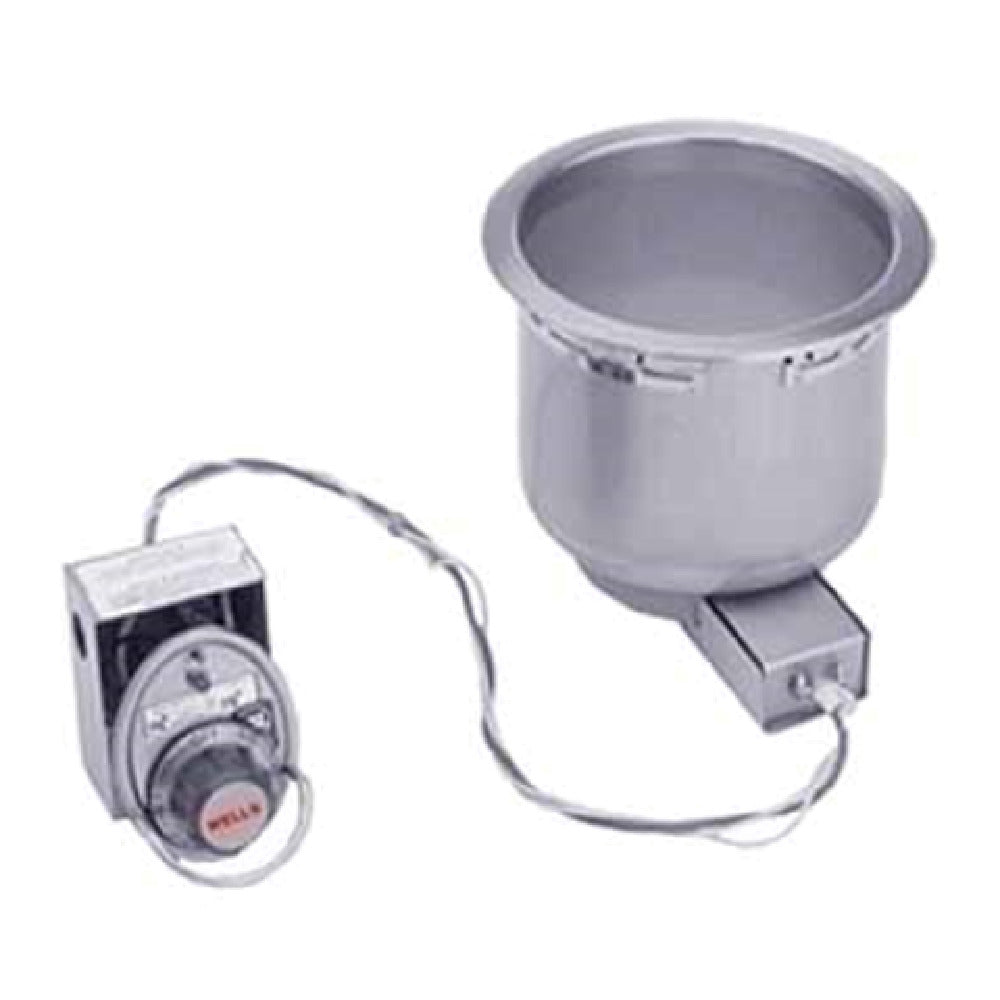 The Wells SS-8TD_120/60/1 Food Warmer is a top-mount, built-in electric unit engineered for versatile culinary applications. Designed to hold a 7-quart round insert, it accommodates both wet and dry operation, enhancing its adaptability across various food service environments. The warmer includes a drain feature, facilitating easy maintenance and efficient operation. Its thermostatic control allows precise temperature regulation, ensuring food is kept at optimal serving conditions. Constructed with high-quality stainless steel, the Wells SS-8TD_120/60/1 showcases durability and longevity, making it suitable for rigorous kitchen settings. Although non-insulated, its robust build is complemented by the patented Wellslok mechanism, ensuring a secure fit and installation ease. This food warmer meets essential safety and sanitation standards, demonstrated by its cURus and NSF certifications. As a reliable kitchen asset, the Wells SS-8TD_120/60/1 Food Warmer is perfectly suited for restaurants, catering services, and food preparation facilities seeking dependable performance with efficient space utilization.