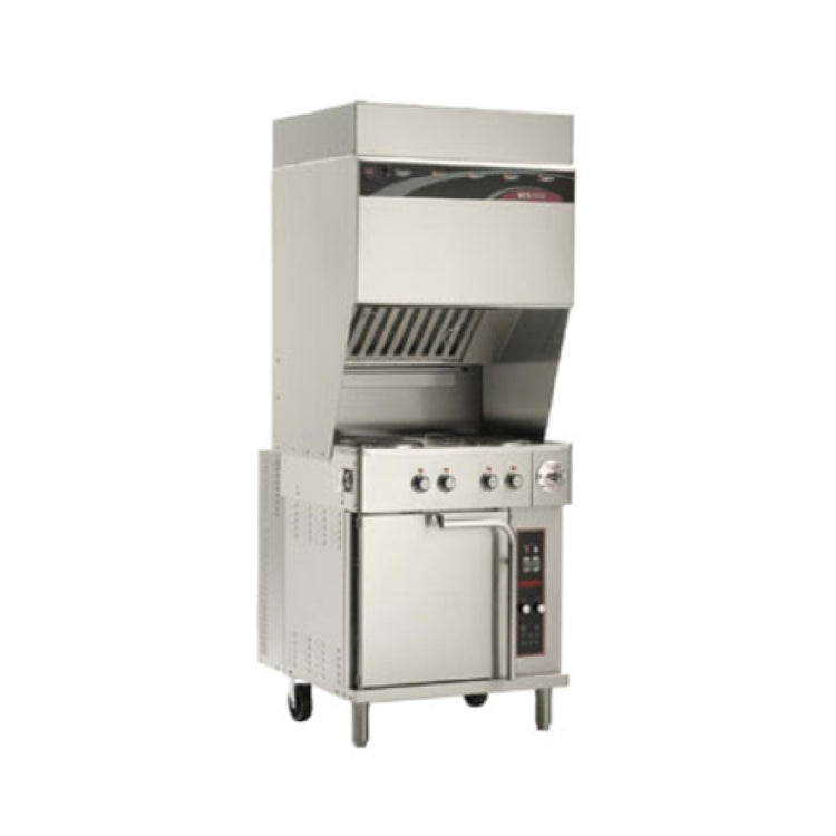 The Wells WVO-4HF_240/60/3 VCS2000 Ventless Cooktop Electric (4) French Plates is a sophisticated cooking solution designed for professional kitchens seeking efficiency and innovation. This electric cooktop is equipped with four French plates, providing precise and uniform heating, and is controlled via thermostatic controls for optimal cooking performance. A standout feature is its self-contained hood system, which eliminates the need for external ventilation, making it ideal for environments with limited kitchen space. The unit's stainless steel construction ensures durability and longevity, supporting heavy-duty use in commercial settings. Additionally, it features a convection oven base, expanding its versatility by allowing for simultaneous baking and roasting. The cooktop is designed with front legs and rear casters, facilitating easy mobility and stable positioning. It is cUL certified, indicating compliance with rigorous safety standards. The product is non-returnable, highlighting the importance of careful purchasing decisions. For maintenance, it requires one Pre-filter (22618) and one HEPA Charcoal Filter Pack (22619) as replacement filters, ensuring continued operational efficiency. This cooktop is particularly valuable for restaurateurs and chefs needing a flexible and comprehensive cooking station without the constraints of traditional ventilation systems.