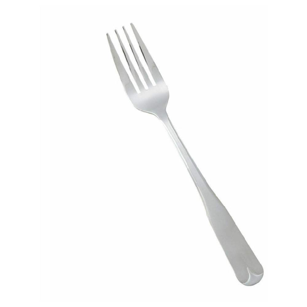 The Winco 0010-05 Dinner Fork 7-5/8" 18-0 stainless steel is a versatile utensil meticulously crafted to meet the demands of various dining settings, from casual family dinners to upscale restaurant dining experiences. This dinner fork boasts a heavy weight, providing a balanced feel that enhances the dining experience, making it a preferred choice for hospitality professionals. Fabricated from 18-0 stainless steel, it ensures durability and resistance to rust, a valuable feature for enduring repeated use in commercial food service environments. The mirror finish of the fork adds a touch of elegance, complementing any table setting by offering a sleek and polished appearance. Measuring 7-5/8" in length, it is designed for comfortable handling and functionality, suitable for a range of meal types. The Lisa pattern featured in this fork presents a subtle yet refined aesthetic, making it an adaptable option for both traditional and contemporary table decor. This combination of aesthetic appeal and robust construction makes the Winco 0010-05 Dinner Fork an essential tool for any culinary establishment, offering reliable performance and enhancing the overall dining experience for guests in diverse market segments within the food and hospitality industry.