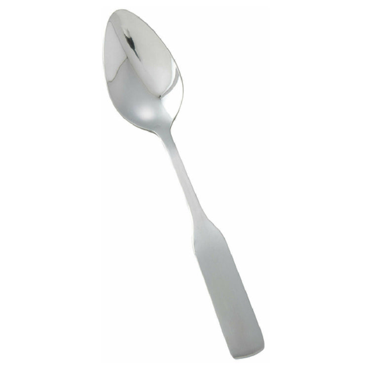 The Winco 0016-01 Teaspoon 6-1/8" is crafted from 18/0 stainless steel, making it notably durable and resistant to wear, though it lacks some corrosion resistance compared to higher-grade stainless steels. Measuring 6-1/8 inches in length, this teaspoon offers a balanced weight that feels substantial in hand, classified as heavy weight, which makes it suitable for both casual dining and more upscale dining settings. The satin finish adds a touch of elegance, providing a refined look that complements any table setting without being overly flashy. Part of the Winston collection, this teaspoon is designed for those in the food service industry who seek a blend of durability and style at an affordable price point. Its construction from 18/0 stainless steel makes it an economical choice for high-volume establishments, such as restaurants, cafes, and catering services, where the combination of style, weight, and cost-efficiency is crucial. This teaspoon is a practical addition to any flatware collection, offering reliability and aesthetic appeal for both everyday use and special occasions.