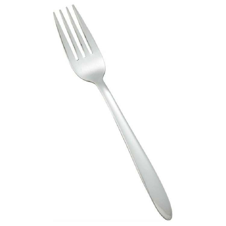 The Winco 0019-05 Dinner Fork 7-3/8" 18/0 Stainless Steel is a high-quality utensil designed for both residential and commercial dining settings. Crafted from 18/0 stainless steel, this dinner fork offers a heavy-weight feel that provides a comfortable and sturdy grip, making it suitable for frequent use in a variety of dining environments, from family meals to fine dining establishments. Featuring a mirror finish, the fork adds a touch of elegance to any table setting, enhancing the dining experience with its aesthetic appeal. The "Flute" design of the fork not only adds to its visual sophistication but also contributes to its functional prowess in handling various types of food. Measuring at 7-3/8 inches, it is optimally sized for balanced handling, catering to the ergonomic needs of users. The construction of this dinner fork ensures durability and resistance to wear, making it a long-lasting addition to any cutlery collection. The use of 18/0 stainless steel indicates a product that is free from nickel, which is beneficial for those with nickel allergies. This feature, combined with its sturdy build and elegant design, positions the Winco 0019-05 as an ideal choice for diverse market segments, including restaurants, catering services, and home dining.