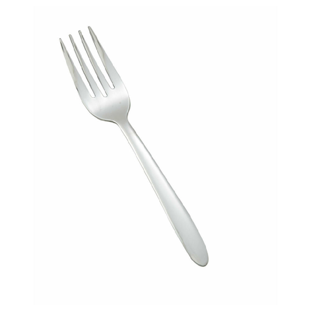 The Winco 0019-06 Salad Fork is a finely crafted utensil, measuring 6-1/4 inches in length and made from 18/0 stainless steel, known for its durability and resistance to corrosion. This heavy weight fork is designed with a mirror finish, adding an elegant touch to any dining setting. Its Flute pattern enhances its aesthetic appeal, making it suitable for both casual and formal occasions. This salad fork is an ideal choice for restaurants, catering businesses, and home dining enthusiasts who value quality and style. The 18/0 stainless steel composition ensures it is economically priced while maintaining a high standard of functionality and appearance. Its robust construction makes it a reliable option for high-volume establishments where longevity and ease of maintenance are crucial. Whether you're setting the table for a family dinner or equipping a large-scale dining operation, the Winco 0019-06 Salad Fork provides a harmonious balance of form and function, ensuring it meets the diverse needs of various market segments within the food service industry. This fork is not only a practical tool but also an enhancement to the culinary experience.