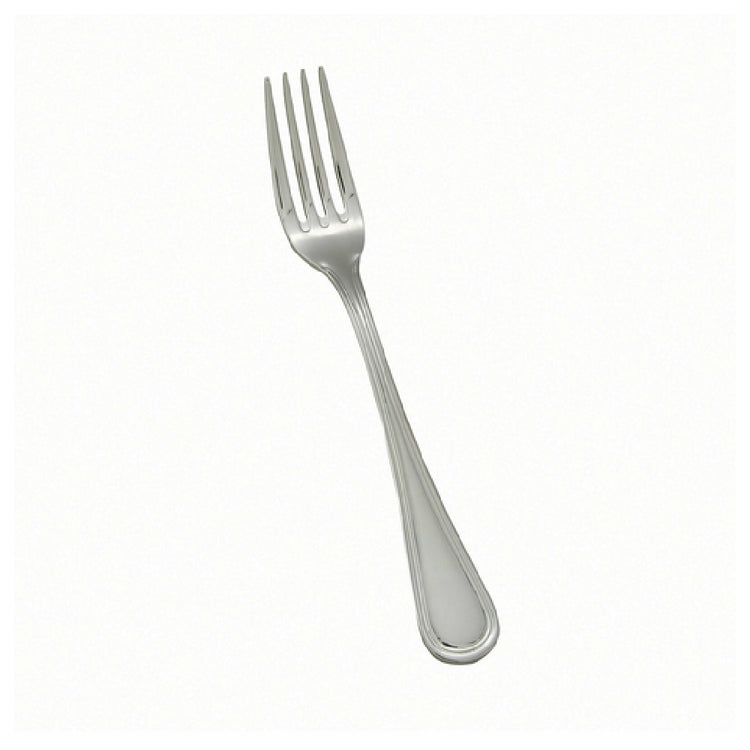 The Winco 0030-05 Dinner Fork 7-1/4" 18/8 Stainless Steel is a remarkable piece of cutlery designed to meet the demands of diverse markets, from casual dining establishments to high-end restaurants. Its extra heavy weight construction ensures durability and a substantial feel in the hand, enhancing the dining experience. Crafted from 18/8 stainless steel, this dinner fork offers superior resistance to corrosion and a lasting shine, making it an ideal choice for both everyday use and special occasions. The mirror finish adds an elegant touch, reflecting a commitment to quality and aesthetics that complements any table setting. Measuring 7-1/4 inches in length, it provides a balanced grip suitable for users of all ages. The Shangarila design emphasizes both style and function, with a classic shape that seamlessly fits into traditional and contemporary venues alike. This dinner fork balances utility with sophistication, making it an essential tool for food service operations looking to impress their patrons with both utility and style. Its robust construction and appealing design make the Winco 0030-05 a versatile option for various segments of the hospitality industry, ensuring that it remains a staple in fine dining and casual settings alike.