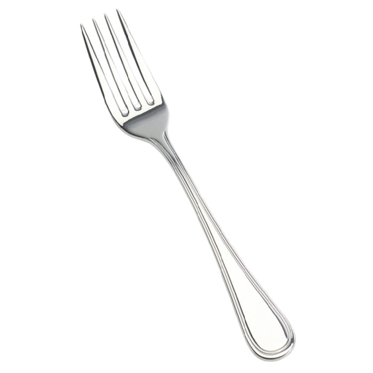 The Winco 0030-051 Dinner Fork 7-1/2" is crafted from 18/8 stainless steel, offering both durability and resistance to corrosion. This extra heavy weight dinner fork features a mirror finish, providing an elegant and sophisticated appearance suitable for various dining settings. Part of the Shangarila collection, this utensil is designed to withstand the rigors of both home and commercial environments, making it a versatile choice for restaurants, hotels, and catering services. The 7-1/2" length is ideal for comfortable handling and effective performance when enjoying a wide range of meals, from salads to main courses. The 18/8 stainless steel composition ensures long-lasting shine and minimal maintenance, while the extra heavy weight design contributes to a balanced and satisfying feel in hand. Its refined design complements a variety of table settings, enhancing the dining experience whether for everyday use or special occasions. This dinner fork's robust construction and timeless design make it a reliable and stylish addition to any cutlery collection, appealing to both traditional and contemporary tastes within the culinary industry.