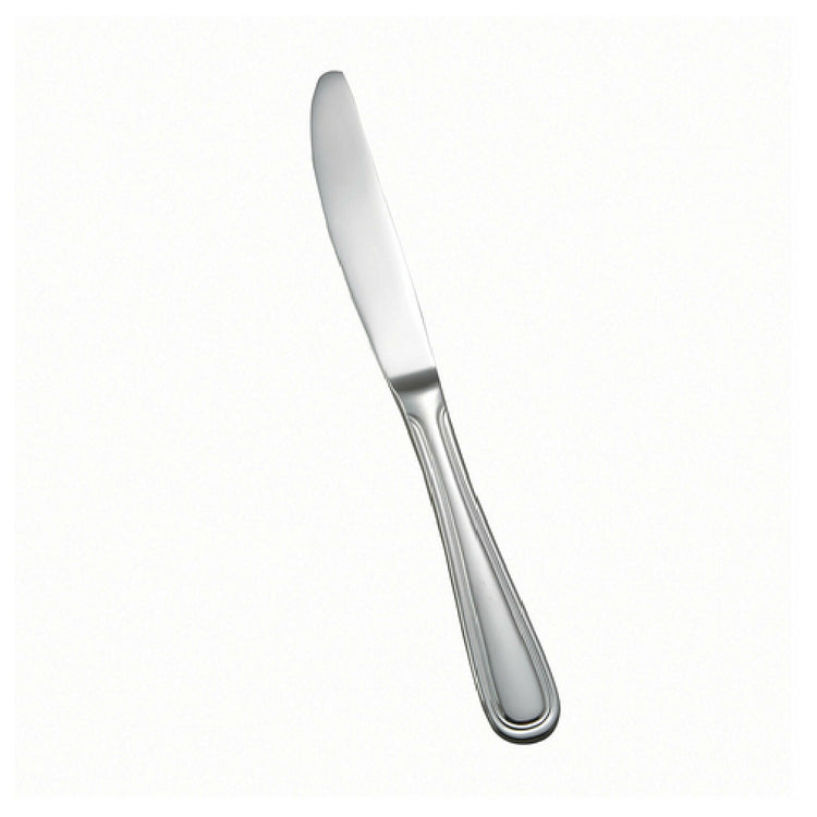The Winco 0030-08 Dinner Knife 9-1/4" is meticulously crafted from 18-8 stainless steel, boasting a solid handle and an extra heavy weight design that ensures durability and excellent performance. This high-quality cutlery piece features a mirror finish, providing an elegant and polished look that enhances any dining setting. The knife is part of the Shangarila collection, known for its superior craftsmanship and sophisticated aesthetics. The 9-1/4" size is ideal for a variety of dining environments, from upscale restaurants to casual dining settings, making it a versatile choice for food service professionals. Its robust construction and timeless design cater to the needs of hospitality businesses seeking both functionality and style in their tableware. The 18-8 stainless steel composition not only offers resistance to corrosion but also ensures longevity, making it a reliable option for frequent use. This dinner knife is an excellent addition to any cutlery collection, blending practicality with a touch of elegance. Its well-balanced weight and solid handle make it comfortable to use, providing a seamless dining experience for guests. The Winco 0030-08 Dinner Knife is an exceptional choice for those in the food service industry looking for quality and durability.