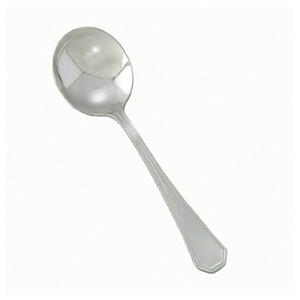 The Winco 0035-04 Bouillon Spoon 5-7/8" 18/8 Stainless Steel is a meticulously crafted piece of flatware, ideal for diverse dining settings, from upscale restaurants to everyday dining. Its extra heavy weight provides a substantial feel in hand, enhancing the dining experience with both elegance and functionality. Made from 18/8 stainless steel, this spoon offers superior resistance to rust and corrosion, ensuring long-lasting durability and maintaining its pristine condition even with frequent use. The mirror finish lends a sophisticated shine to the utensil, complementing a wide range of table settings. Measuring 5-7/8 inches, it is perfectly sized for serving soups, broths, and other liquid-based dishes, making it a versatile addition to any cutlery collection. Part of the Victoria line, this bouillon spoon embodies a classic design that seamlessly integrates into traditional and contemporary aesthetics alike. Its robust construction and elegant design make the Winco 0035-04 Bouillon Spoon an excellent choice for food service establishments seeking to balance durability with style, as well as for individuals enhancing their home dining experience with high-quality flatware.