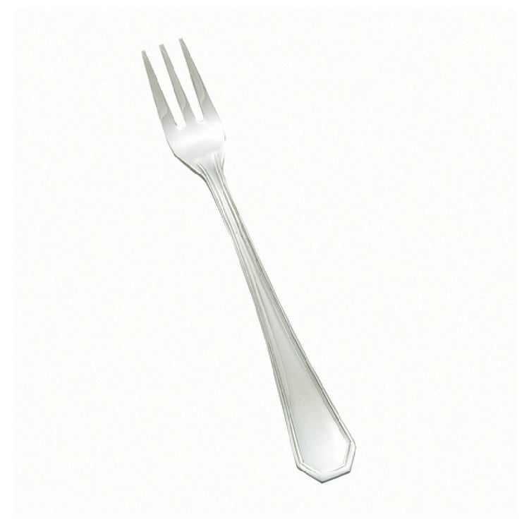 The Winco 0035-07 Oyster Fork 5-9/16" 18/8 Stainless Steel is a meticulously crafted dining utensil designed for sophisticated culinary presentations. Precision-engineered from 18/8 stainless steel, this oyster fork embodies extra-heavy weight quality, offering durability and a reassuring heft that enhances dining experiences. Its dimensions, measuring at 5-9/16 inches in length, are ideal for handling delicate seafood with ease and elegance. A mirror finish graces this utensil, reflecting Winco's commitment to delivering a touch of sophistication and visual appeal to any table setting. The Victoria pattern adds a classic charm, seamlessly blending with diverse tableware styles, making it suitable for both upscale restaurants and home dinner parties. This oyster fork caters to various market segments, including high-end dining establishments, catering services, and seafood enthusiasts, by providing a reliable and aesthetically pleasing tool for savoring oysters and other shellfish. Its superior construction ensures longevity, making it a cost-effective solution for businesses that prioritize both form and function. The Winco 0035-07 Oyster Fork is a testament to quality craftsmanship and thoughtful design, offering a unique value proposition for those who seek to elevate their dining experience with a touch of elegance and reliability.