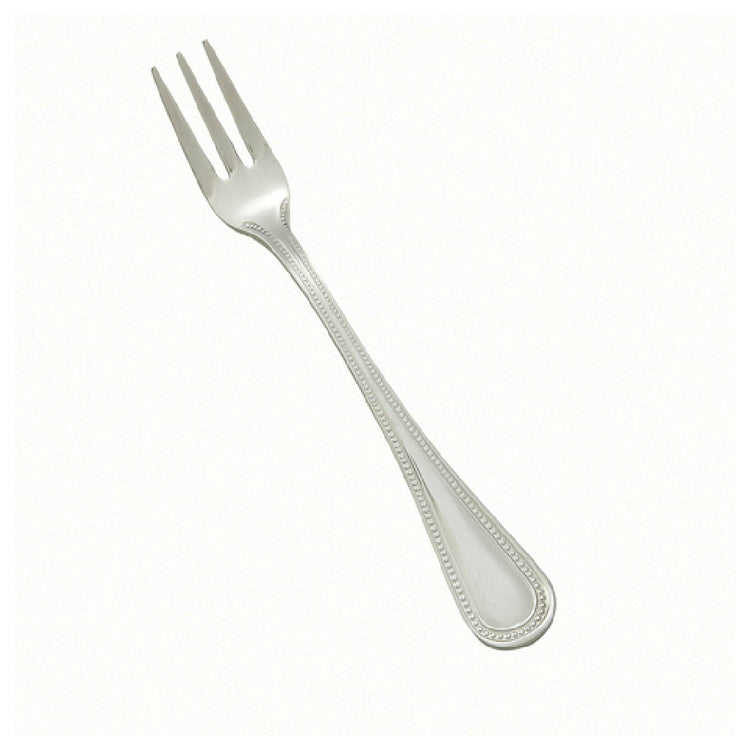 The Winco 0036-07 Oyster Fork is a meticulously crafted utensil, measuring 5-3/8 inches, and made from high-quality 18/8 stainless steel, exemplifying its durability and resistance to corrosion. This extra heavy-weight fork is designed to provide a substantial feel, ensuring a comfortable and firm grip during use, which is particularly advantageous in professional culinary environments. Its mirror finish not only enhances its aesthetic appeal but also adds a layer of sophistication, making it suitable for upscale dining settings. The Deluxe Pearl design adds a touch of elegance, catering to fine dining establishments looking to enhance their table setting. This oyster fork is ideal for seafood restaurants, catering services, and hotels that prioritize both functionality and presentation. With its robust construction and elegant design, the Winco 0036-07 Oyster Fork serves as a reliable and stylish tool for efficiently handling oysters, making it a valuable addition to any cutlery collection. This product meets the demands of professional chefs and dining establishments that seek high performance and long-lasting quality in their kitchen tools, ensuring that it stands out as a preferred choice in the food service industry.