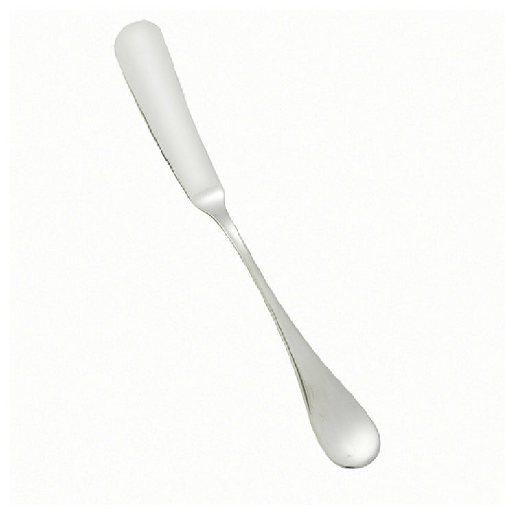 Winco 0037-12 Butter Spreader 6-3/4" 18/8 Stainless Steel is a premium quality utensil crafted for both professional and home culinary settings. Measuring 6-3/4 inches in length, this butter spreader is part of Winco's esteemed Venice collection, renowned for its blend of style and functionality. This utensil is made from 18/8 stainless steel, indicating its composition of 18% chromium and 8% nickel, providing durability, corrosion resistance, and a long-lasting mirror finish that enhances its aesthetic appeal. The extra heavy weight of the spreader not only contributes to its robust feel but also ensures precision and ease of use during food preparation, making it ideal for spreading butter, soft cheeses, or other spreadable toppings with consistent ease. The mirror finish adds a sophisticated touch, making it a suitable choice for elegant table settings in upscale dining establishments or for those seeking to elevate their home entertaining experience. The Winco 0037-12 Butter Spreader is a versatile tool that seamlessly combines practicality with a refined design, catering to the needs of restaurants, catering services, and discerning home cooks who prioritize both performance and style in their kitchen utensils.