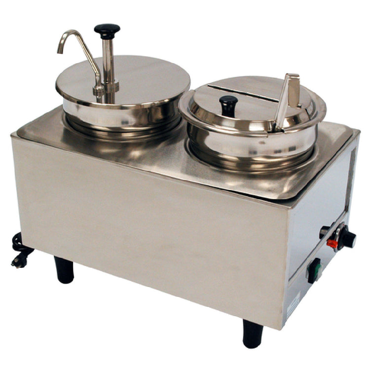 Winco 51073P Benchmark Dual Well Warmer (2) 7 Qt. Wells (1) Stainless Steel Pump